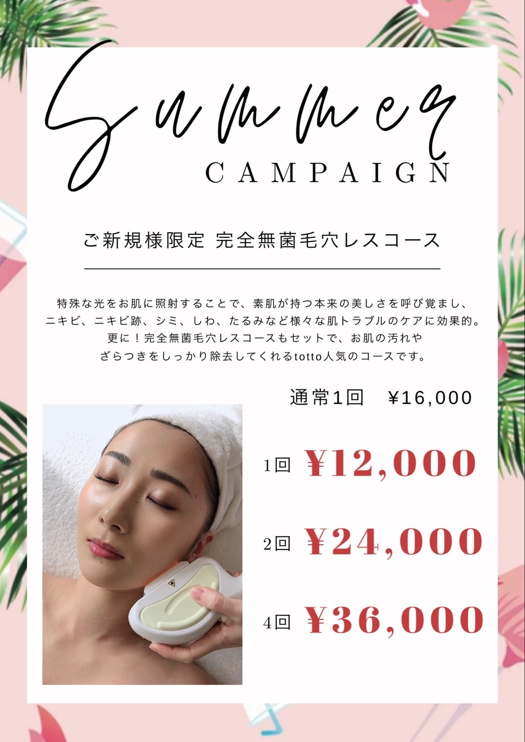 totto不動の人気No.1メニュー"完全無菌毛穴レスコース" がご新規様限定!で嬉しい割引き価格に😍👏